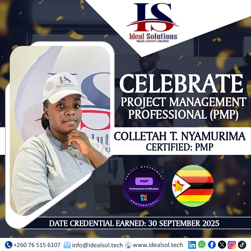 Today, we proudly celebrate Colletah Tadiwa Nyamurima, who has earned her Project Management Professional (PMP®) certification! 🎉