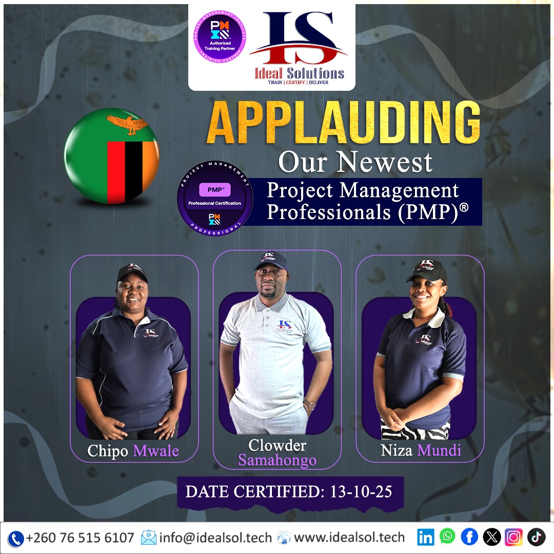 I have never seen any other effective training institution for PMP other than Ideal Solutions, Cephas,Fadzai,Edson and Cain you're an effective team 👏
